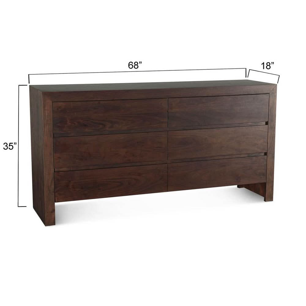 The Acadia Dresser is an eco-friendly, solid wood 6-drawer dresser created by Home Trends & Design. Unparalleled craftsmanship and rustic modern design gives the Acadia Collection a timeless yet versatile style. Each piece in this collection is handcrafted with solid acacia wood. With its unique grain patterns and transitional appeal, the products in the Acadia collection offer rich character in a variety of different settings. Available in rich coffee or natural driftwood finishes, this collection features products from sleek bedroom furniture to tables, chairs, and more.