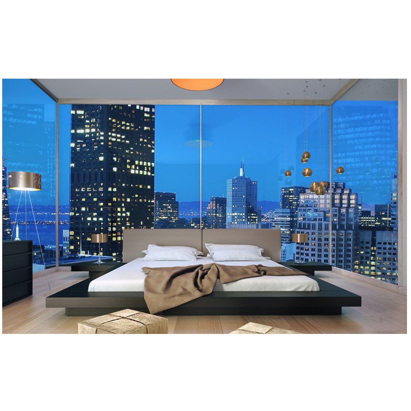 Inspired by the Japanese design themes of simplicity and harmony, our floating Arata Platform Bed is a great way to bring a touch of minimalist elegance into your bedroom. The Arata Japanese style platform bed features a low profile bed frame, which sits Asian style close to the ground on a pedestal composite wood base. An offset padded, textile leather or fabric headboard provides comfort and convenience and is perfect for leaning up against late-night movies or best-selling novels. Two side shelves, one on each side of the bed, offer a sleek, balanced look to the bed that is welcoming and relaxing (shelves can be removed).