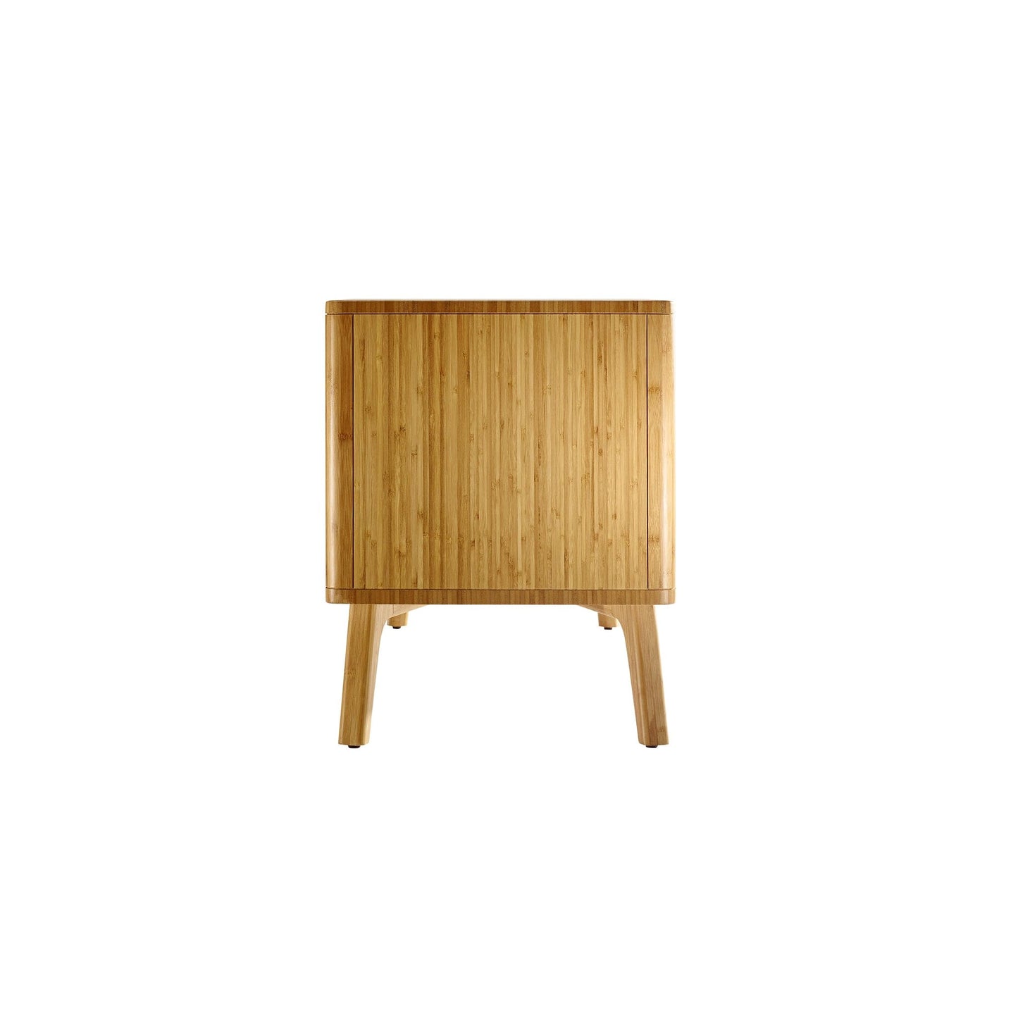 The Greenington Azara Media Cabinet is a sleek and eco-friendly solution for your media storage needs. Expertly crafted with solid bamboo, this media cabinet showcases the beauty of the natural wood grain and a deep caramelized finish. With its clean lines and minimalist design, it offers a spacious open shelf that can accommodate your media components, such as a DVD player or gaming console. The cabinet also features three enclosed compartments with shelves, providing ample space to store DVDs, CDs, or other media accessories. With its sustainable construction and contemporary aesthetics, the Greenington Azara Media Cabinet is a stylish and environmentally conscious choice for organizing and displaying your entertainment essentials.