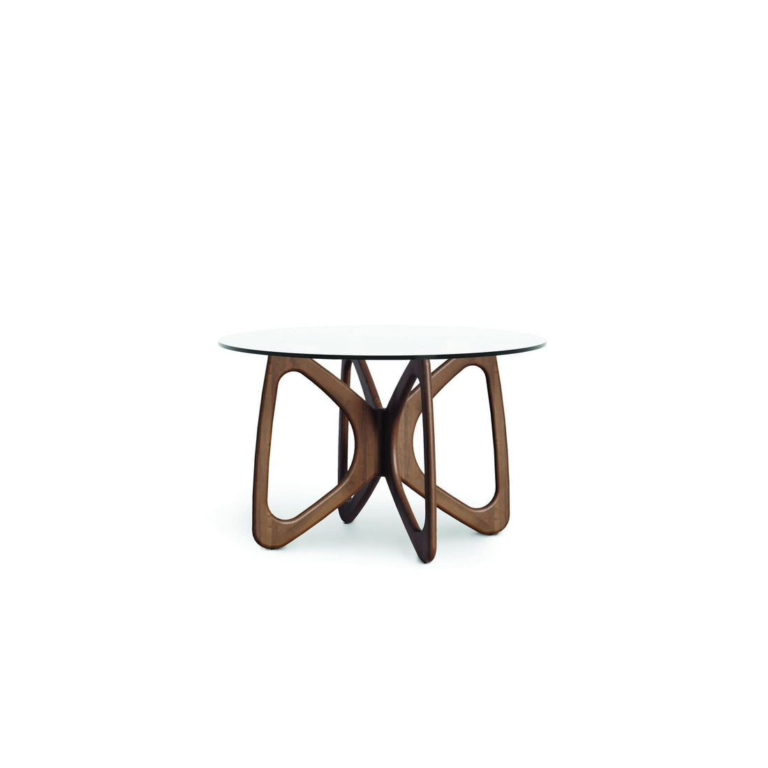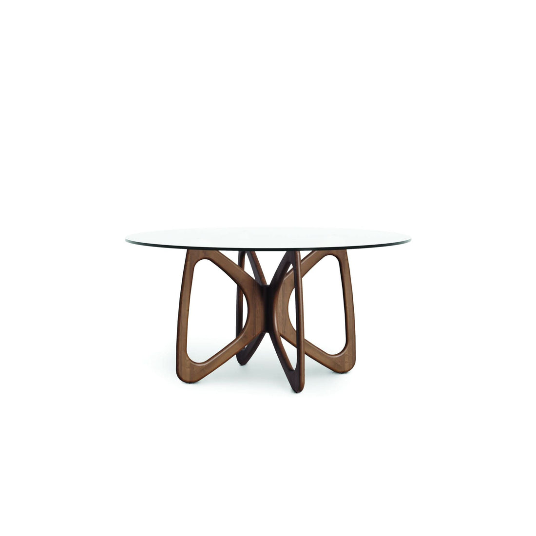 • The Butterfly Round Glass Top Table from Copeland has three sizes, comfortably seating 4, 5 and 6 people.