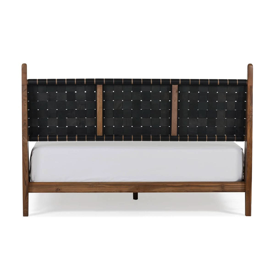 • The genuine leather woven headboard is functional to lounge and relax against while in bed.