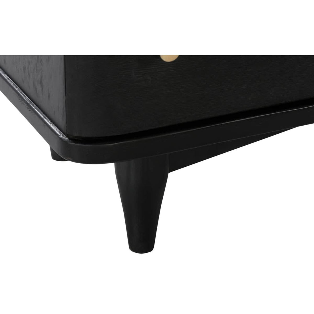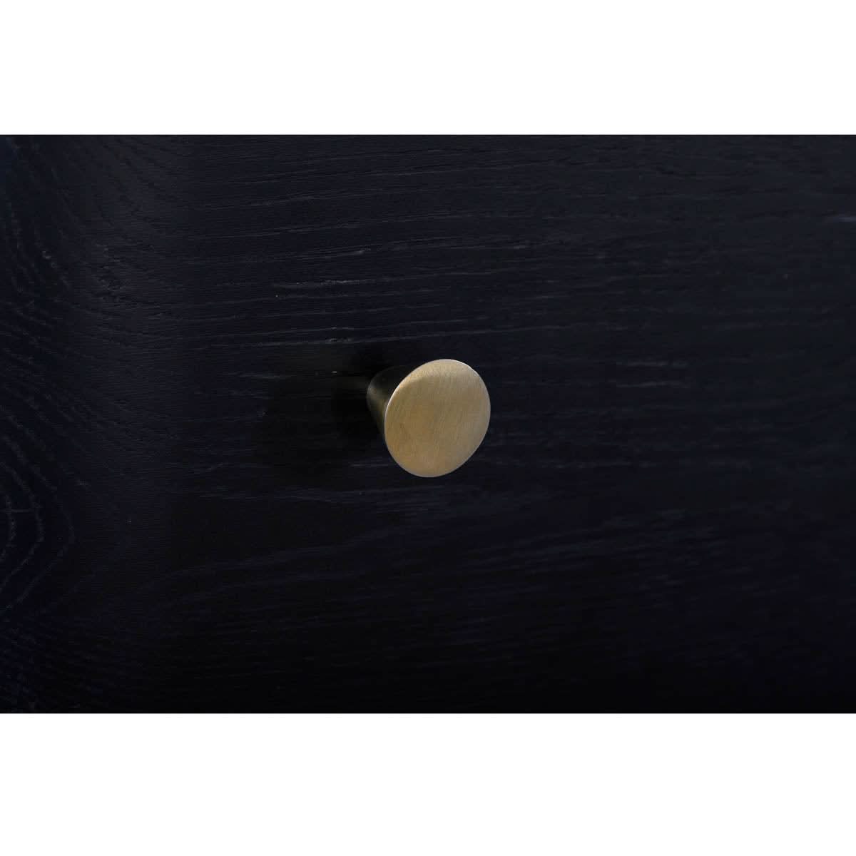 - Brushed brass drawer pulls shine brightly against the dark Charcoal finish and pop brightly against the Natural wood grain.