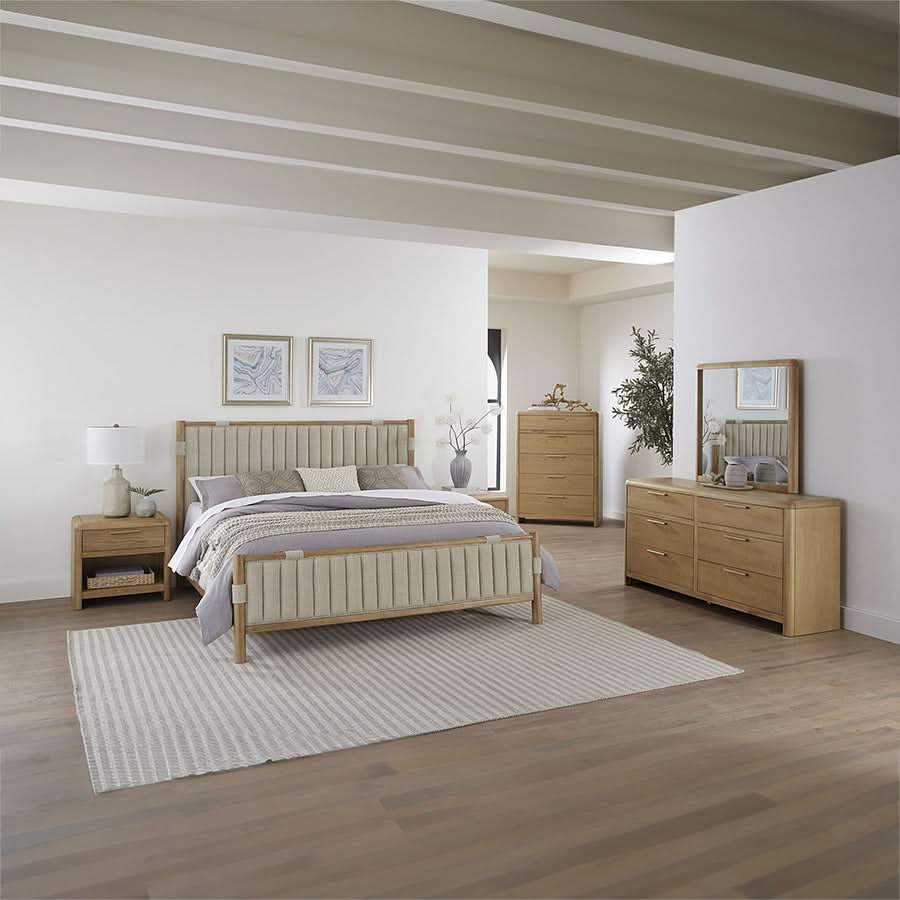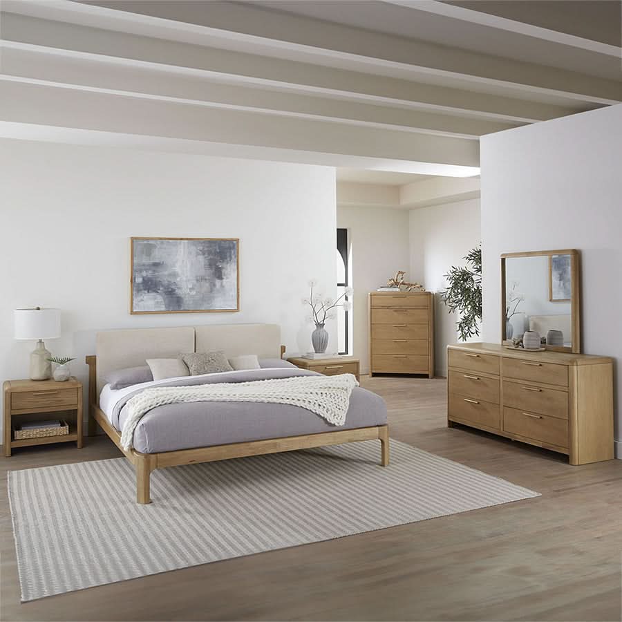 Designed to harmonize with your space, the Furano collection seamlessly blends soft edges, natural materials, and thoughtful craftsmanship. Ash wood veneer in a soft ginger root finish takes center stage, showcasing natural wood grain formed over decades. Cylindrical wooden pulls and a choice of plush upholstered or platform beds in the collection allow you to curate a haven of pure serenity.