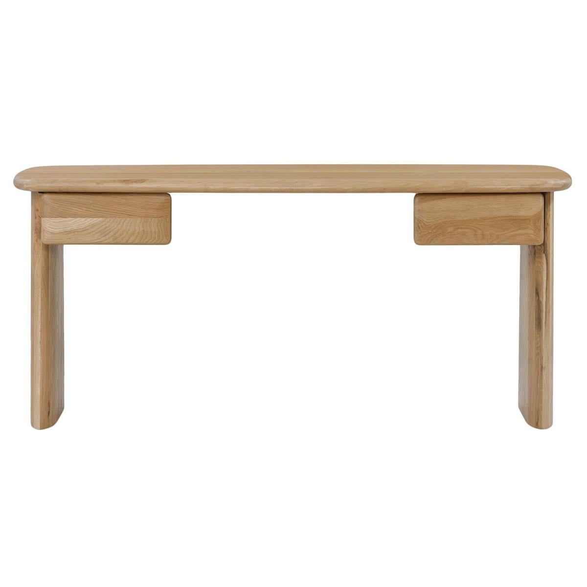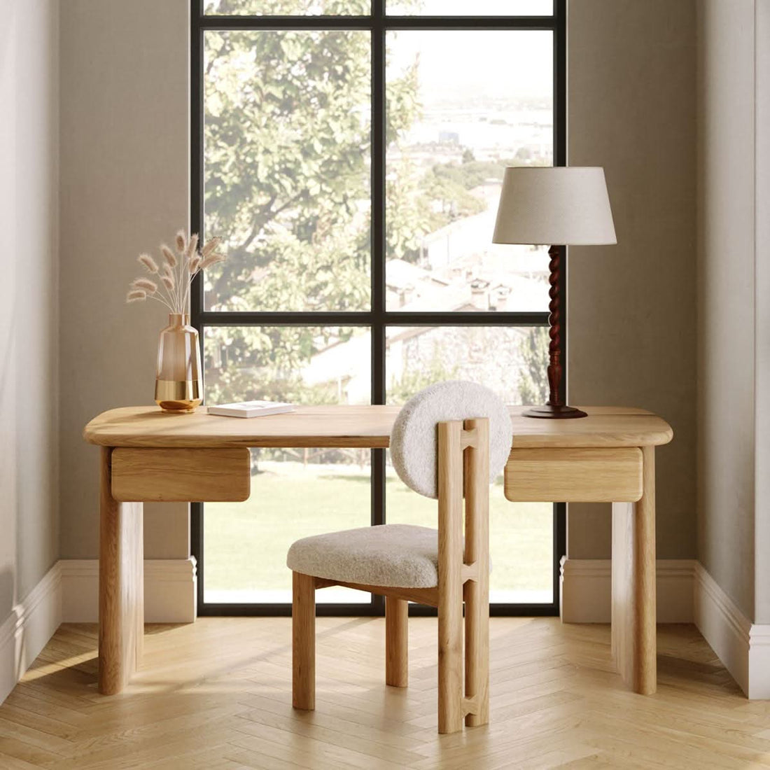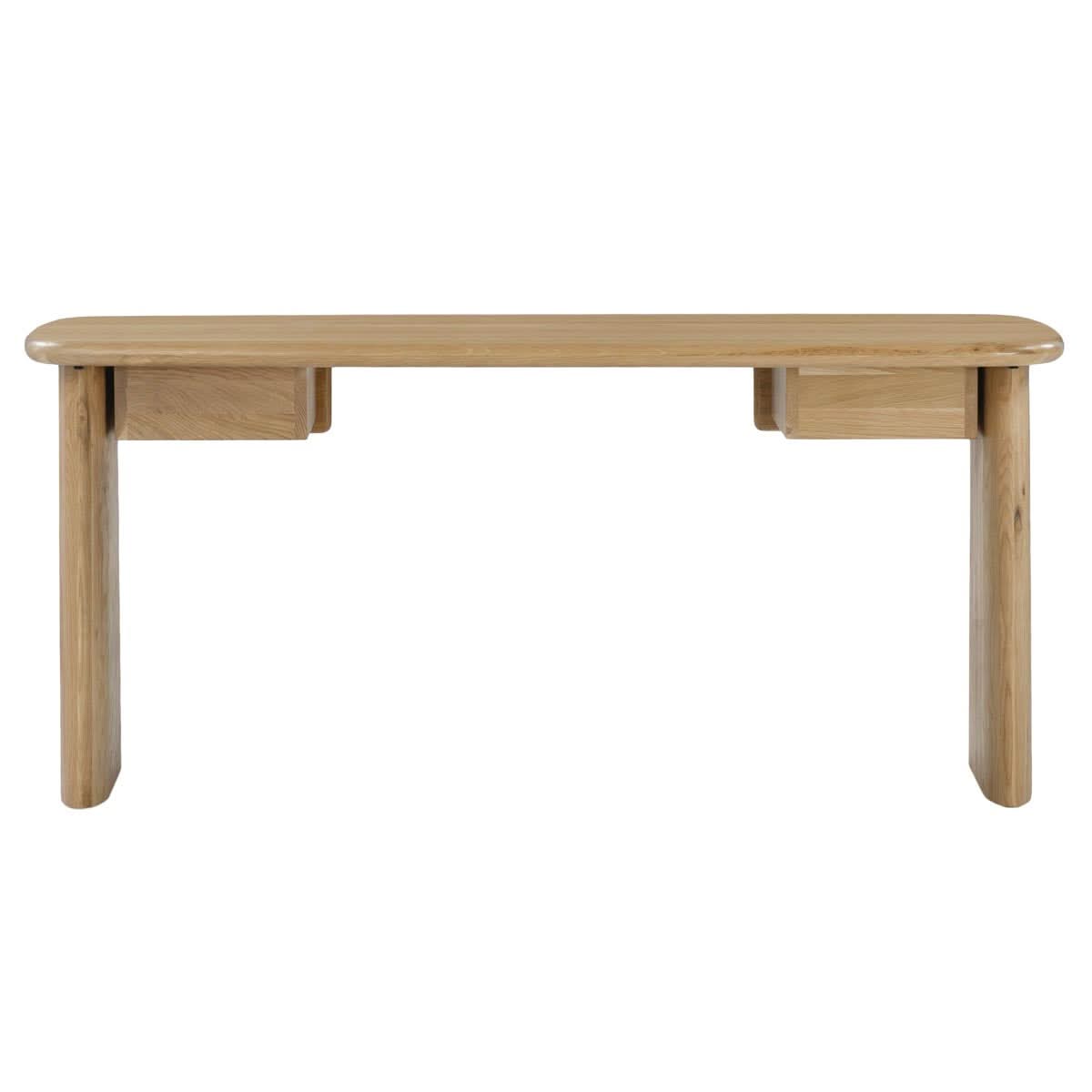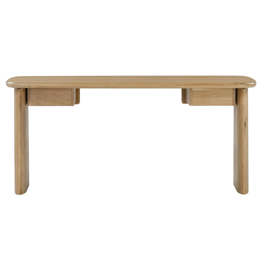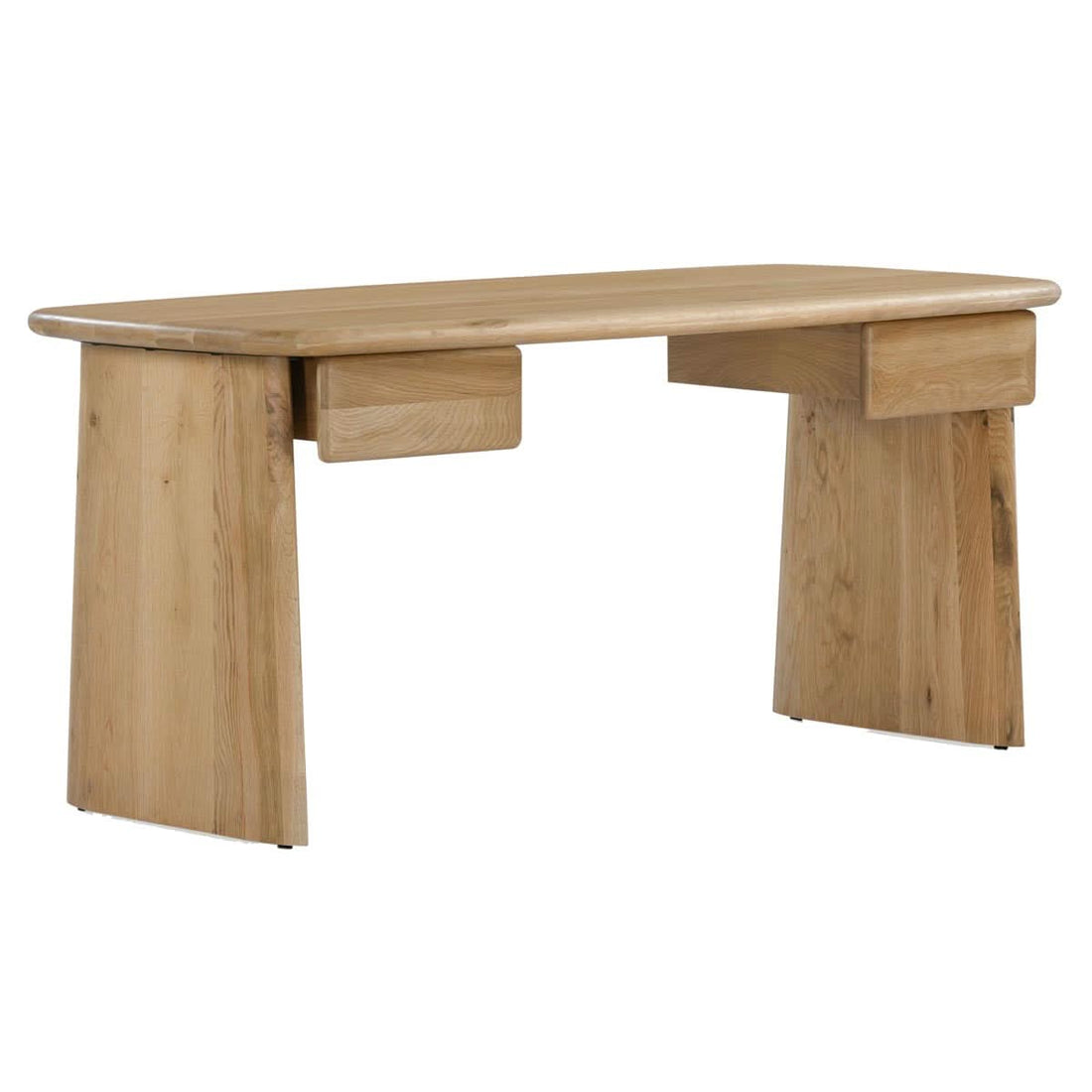 Organically inspired Modern Design, the Union Home Laurel Desk features a beautifully sculpted, FSC Certified Oak Wood top and base construction. A wire brushed finish with a matte, clear coat finish highlights the natural beauty of the wood grain. 2 soft, rounded drawers offer plenty of storage space for all your desk accessories.