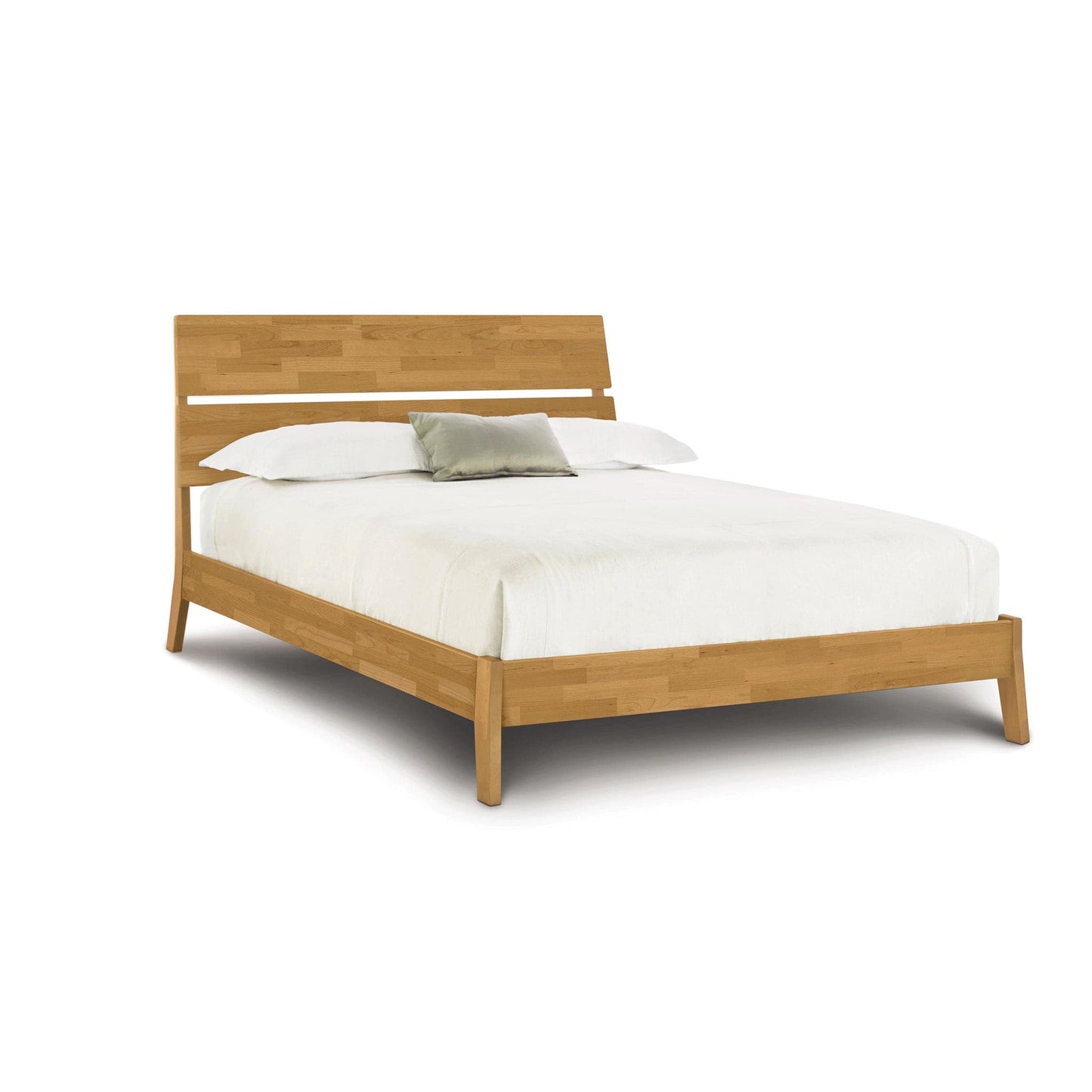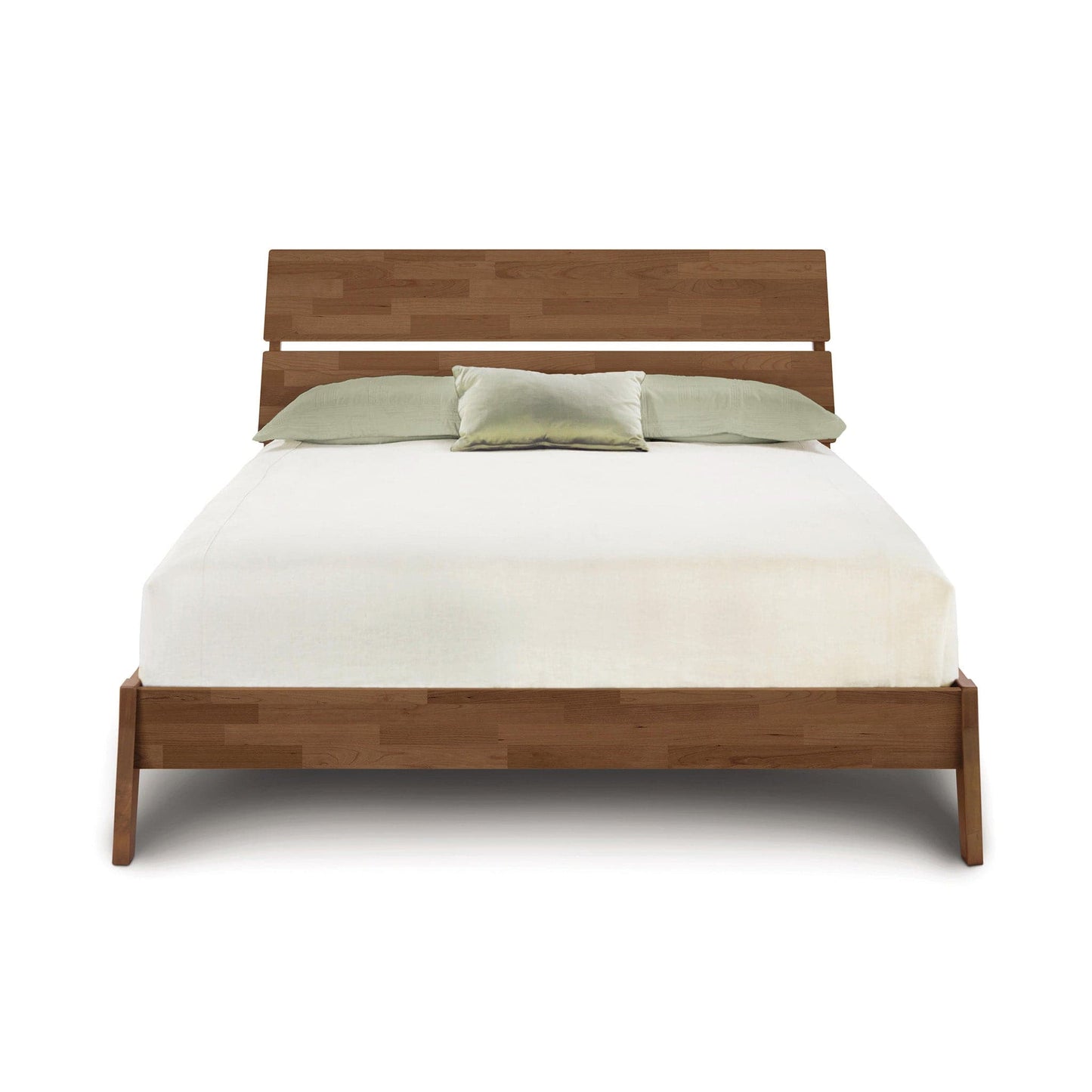 The Copeland Linn Platform Bed, crafted from upcycled lumber from the Copeland manufacturing process is a striking contemporary interpretation of Japanese Design principles, with a strong emphasis on natural materials and environmental responsibility--let's not waste that beautiful wood! Even more eye-catching, when joined together, the pieces on the Linn create a beautiful wabi-sabi patterning and pronounced horizontal orientation that even traditional Japanese Design appreciates. With the ever-so-slight angling in the headboard and legs, however, you can spot the Contemporary Japanese influence. The Copeland Linn collection is centerpieced by the practical and versatile Linn Platform Bed. The beautiful wood patterning almost distracts from the sturdy and solid construction of the Linn.