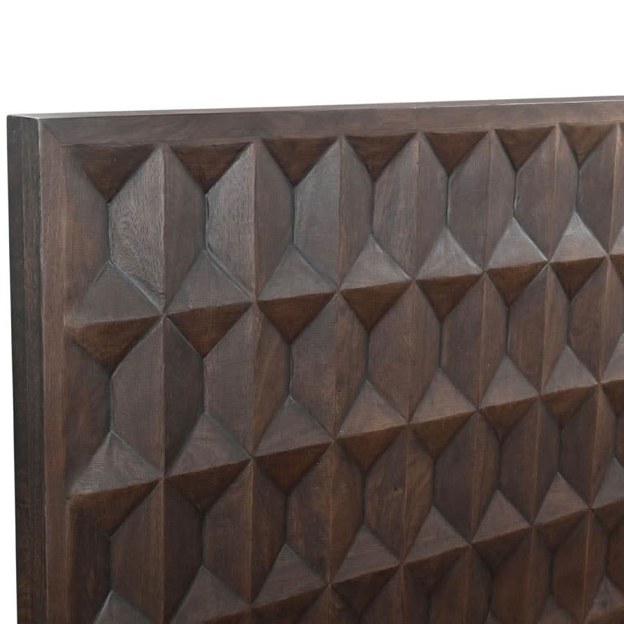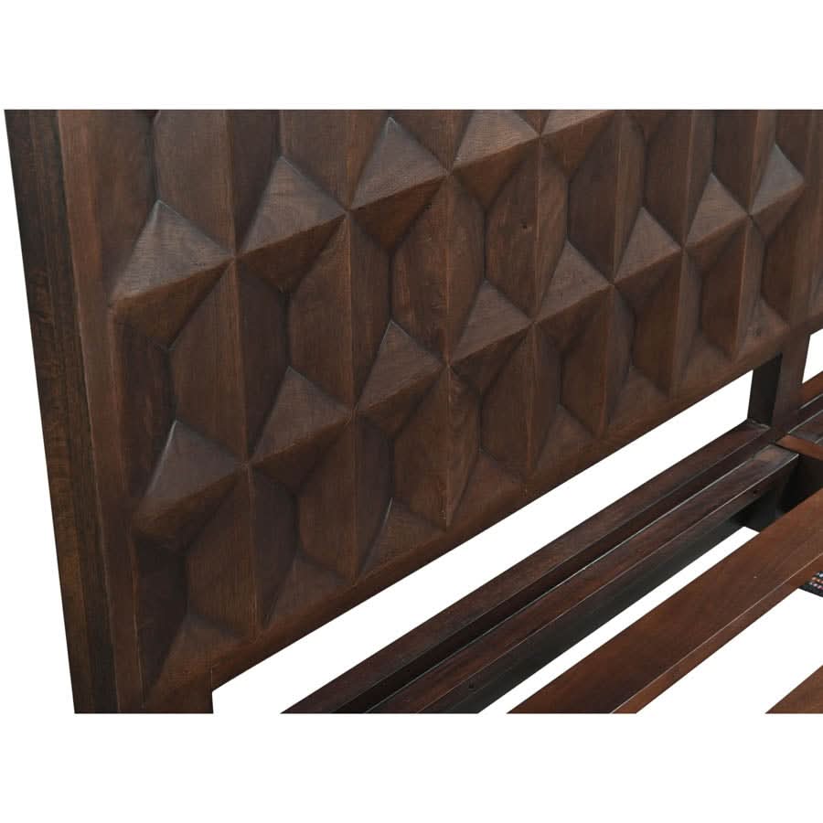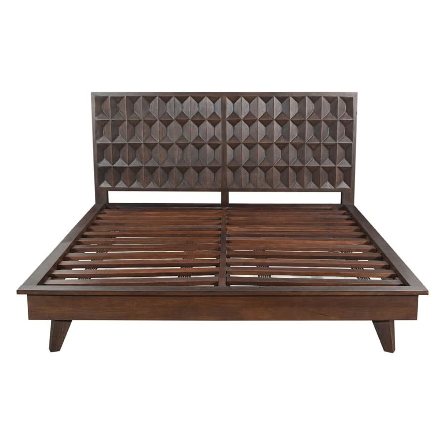 - The Lisbon Platform Bed features Mid-Century Modern angles and a hand-carved headboard.
