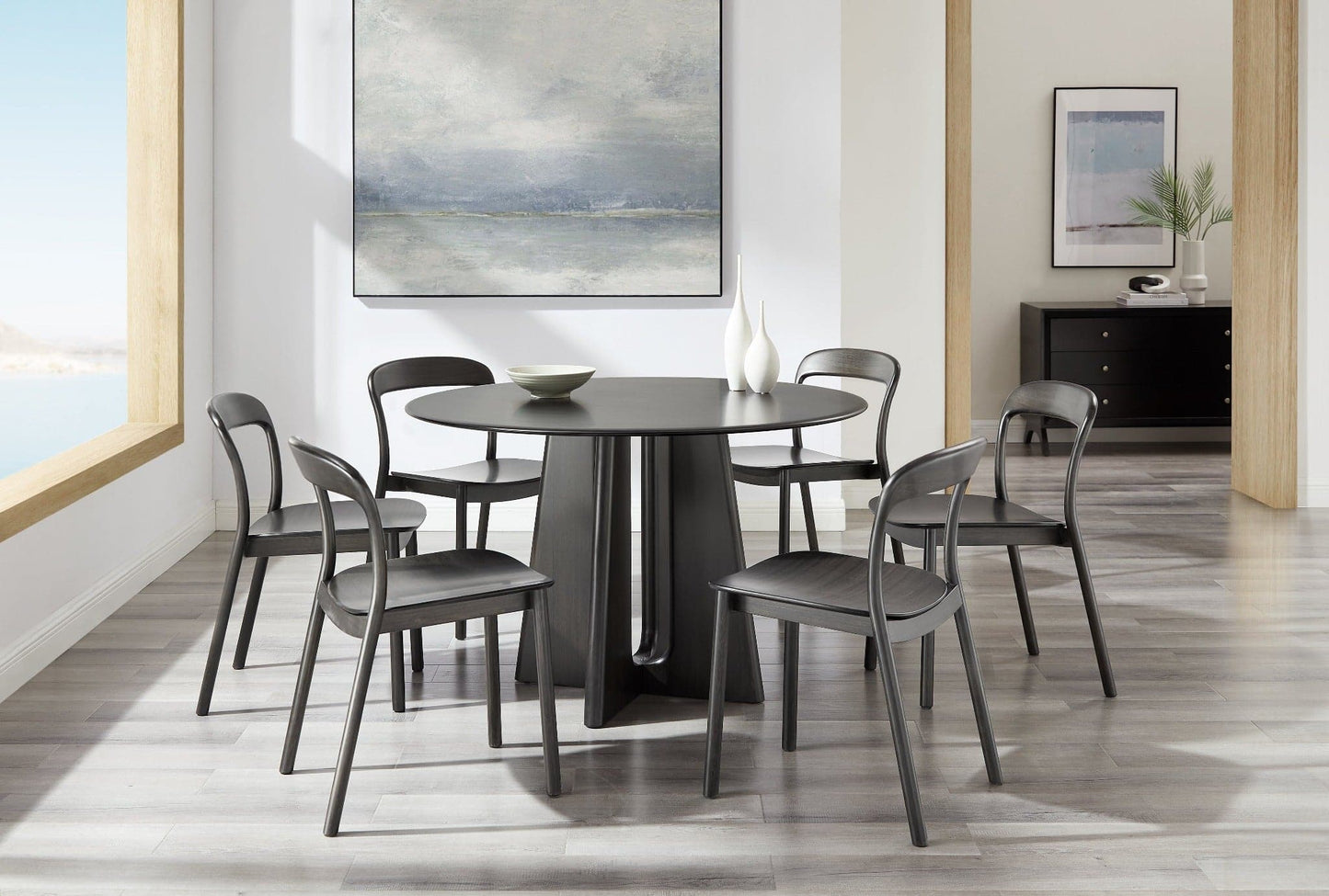 With a blend of strength and simplicity, Luna's shapely base creates an elegant silhouette, while the rich Caviar finish infuses the table with a bold, contemporary allure. Ideal for today's homes, the Luna table comfortably accommodates four to six, fostering a natural gathering space for family, friends, and colleagues alike.