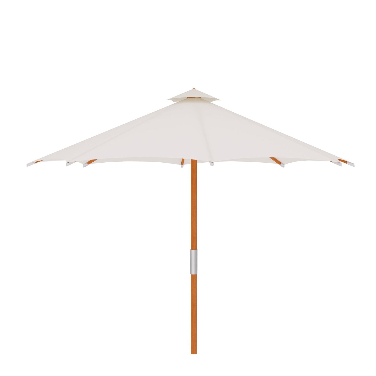 The Market Umbrella from HiTeak is a wide shade umbrella made from performance fabric and premium teak. Shade is an essential feature for all outdoor living spaces today. The Market Umbrella covers almost 10 feet of shade and features a double pulley system. This item ships with a white polyester canopy that is fully water-resistant and will not discolor in the sun. Overall dimensions: W 118" x D 118" x H 106.25"