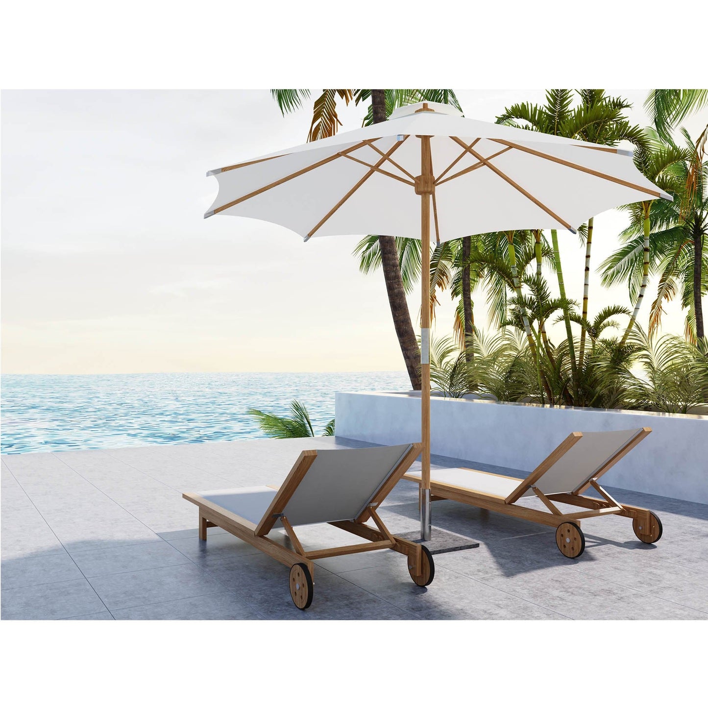 This Teak Umbrella is a durable outdoor umbrella perfect for blocking sunlight while looking effortlessly elegant. Double wind vents prevent damage in windy conditions and make the umbrella easy to open when you need shade, making it safe to use in full sun exposure. The base for this umbrella is not included.