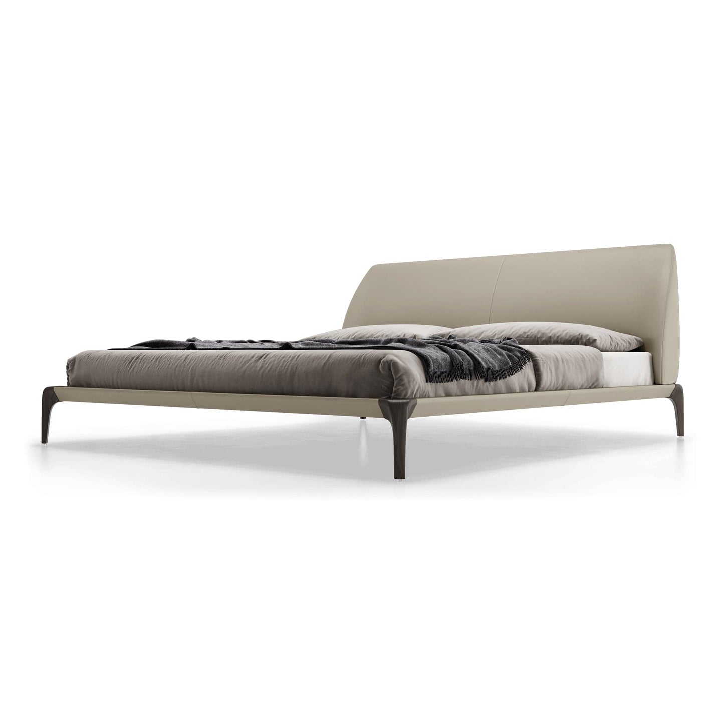 Designed for exceptional sleep and enduring beauty, the Sheridan Bed marries form and function seamlessly. Its slender yet robust frame is enveloped in a smooth and stain-resistant ecopelle, meticulously hand-sewn to cradle every contour and curve. Within the Sheridan lies a wealth of captivating details. The headboard's gently undulating curves create a sense of nestled comfort, perfectly aligned to offer both support and relaxation when sitting up. Solid ash wood feet, hand-carved and tapering gracefully, emerge from the ecopelle-wrapped frame and elegantly meet the floor, forming a striking contrast that defines the bed's distinctive character. For a cleaner and healthier sleep, the mattress snugly rests on flexible solid eucalyptus slats with a steel frame. The platform stands at a comfortable 11-inch height with a 1-inch inset, eliminating the need for a box spring. Mattress not included